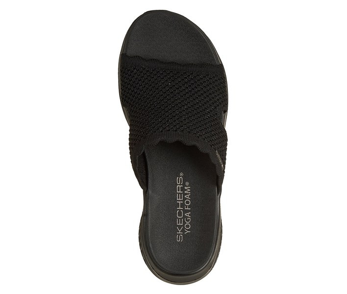 Fekete színű Skechers 164055-BBK női papucs. Felsőrészének az anyaga: