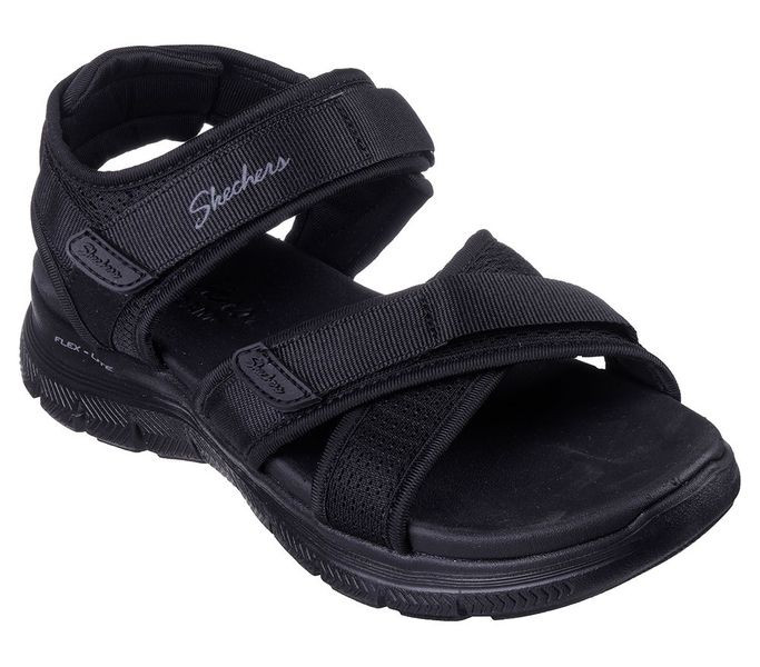 Fekete színű Skechers 119487-BBK női szandál. Felsőrészének az anyaga: Textil felsőrész