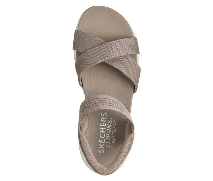 Bézs színű Skechers 119975-TPE női szandál. Felsőrészének az anyaga: