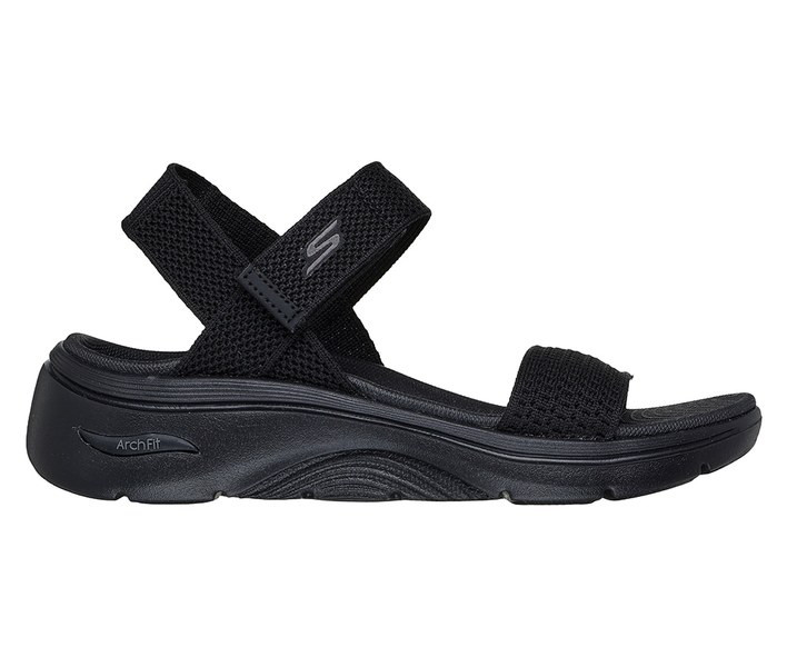Fekete színű Skechers 140874-BBK női szandál. Felsőrészének az anyaga: Textil felsőrész