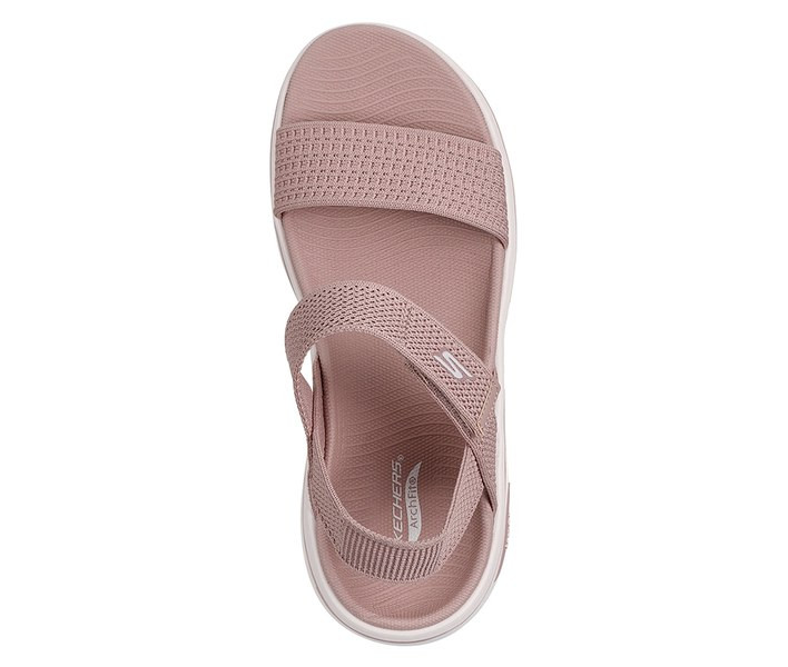 Rózsaszín színű Skechers 140874-MVE női szandál. Felsőrészének az anyaga: Textil felsőrész