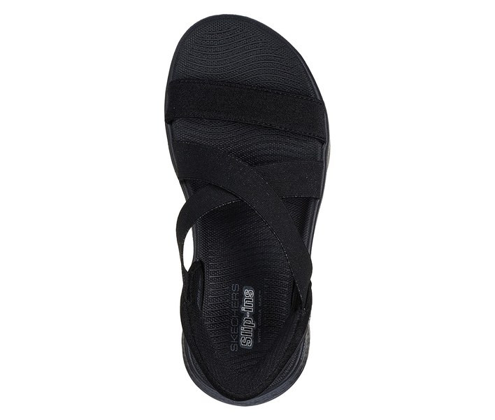 Fekete színű Skechers 141489-BBK női szandál. Felsőrészének az anyaga: Textil felsőrész