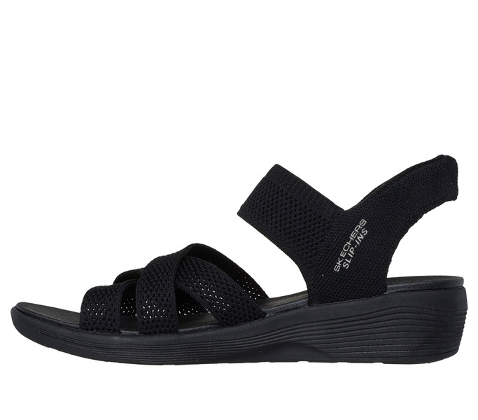 Fekete színű Skechers 163524-BBK női szandál. Felsőrészének az anyaga: Textil felsőrész